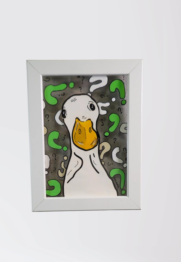 Nasza gęś ma same pytania… i wygląda na to, że wie, że nikt nie zna odpowiedzi! Idealna dla miłośników zwariowanych i zabawnych motywów w domu.