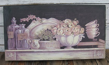 Piękny nowy obraz - komoda, wykonany na grubej płycie.Wygląda jak ręcznie malowany. Obraz w stylu retro, vintage.