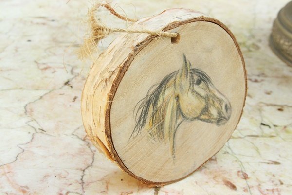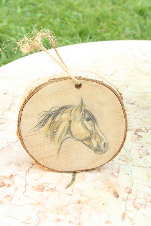 Rysunek konia na brzozie, stan bdb