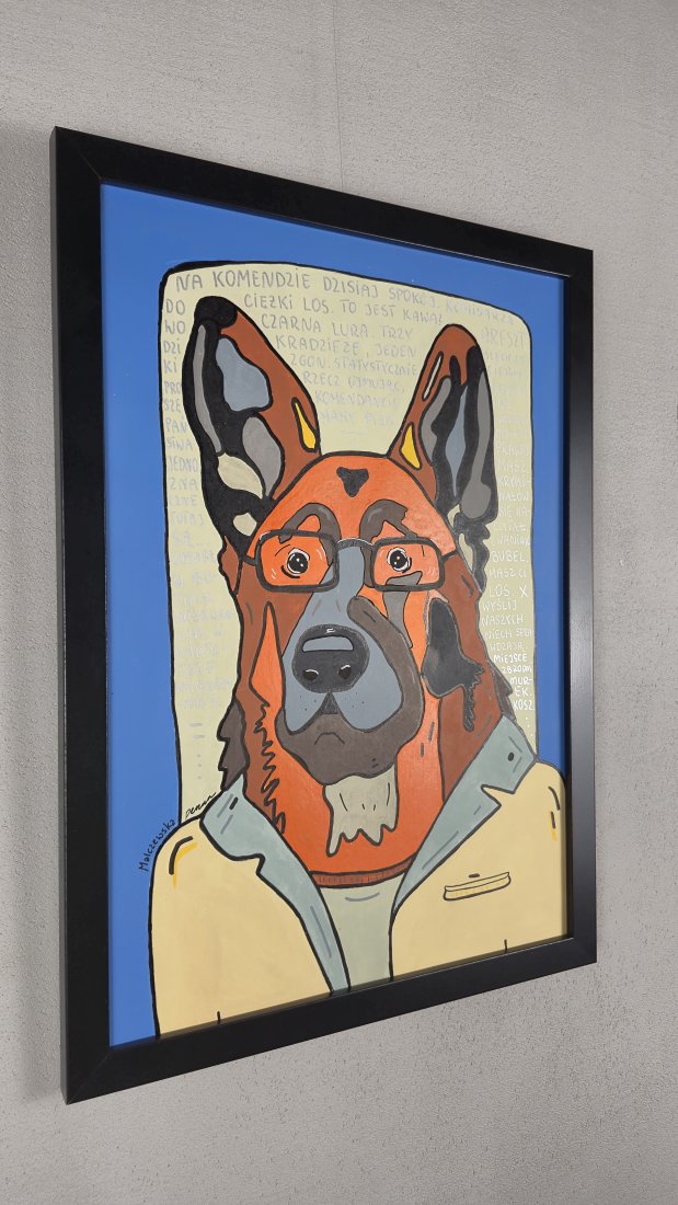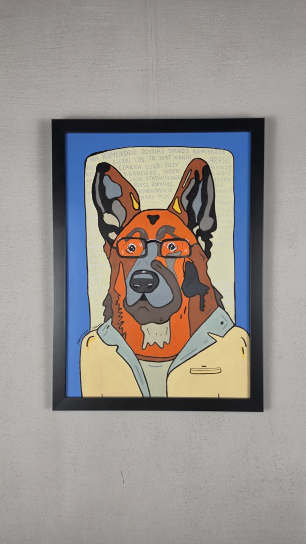 Pełna humoru grafika idealnie sprawdzi się jako prezent dla miłośnika Owczarków Niemieckich i służb mundurowych.