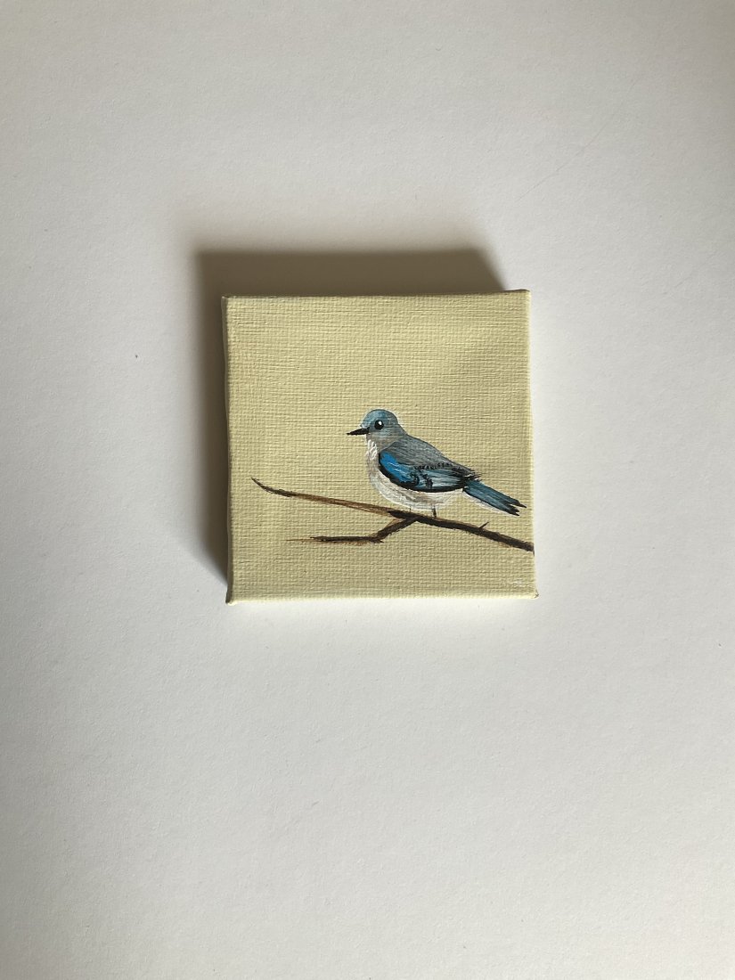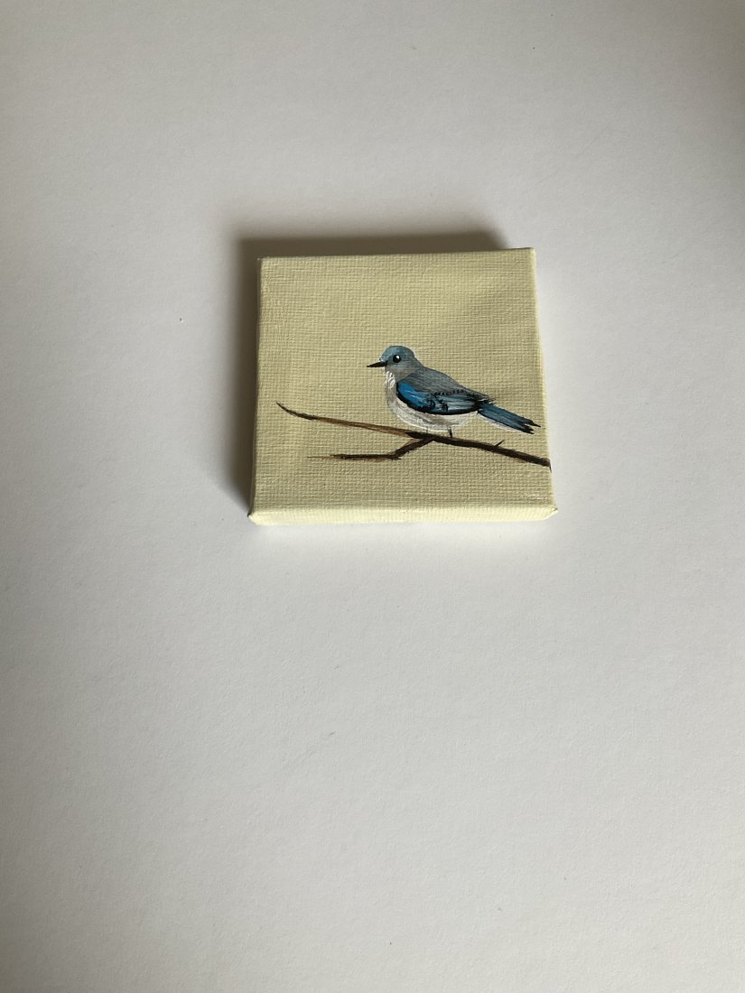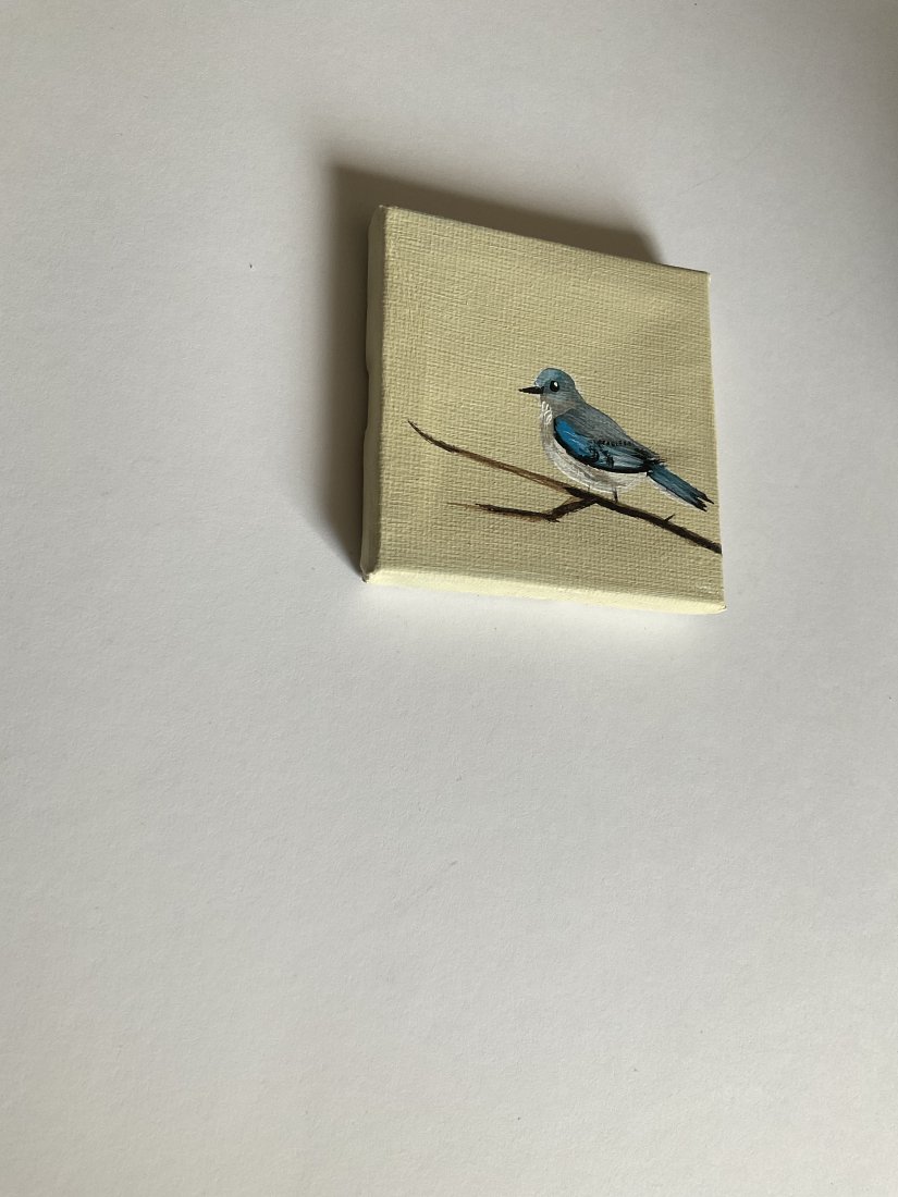 Obrazek z ptaszkiem, ręcznie malowany przeze mnie.