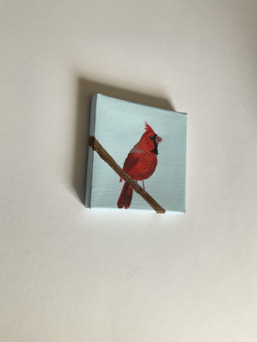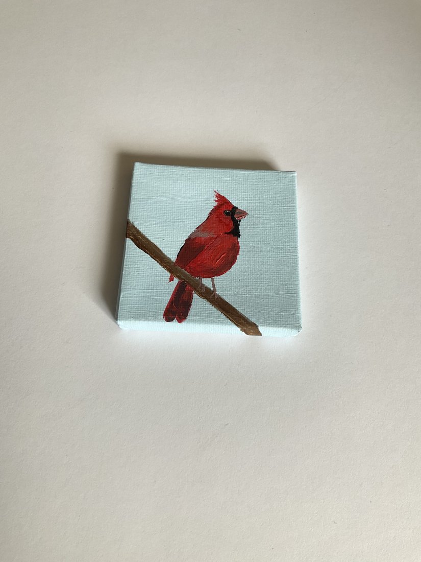 Obrazek z ptaszkiem, ręcznie malowany przeze mnie.