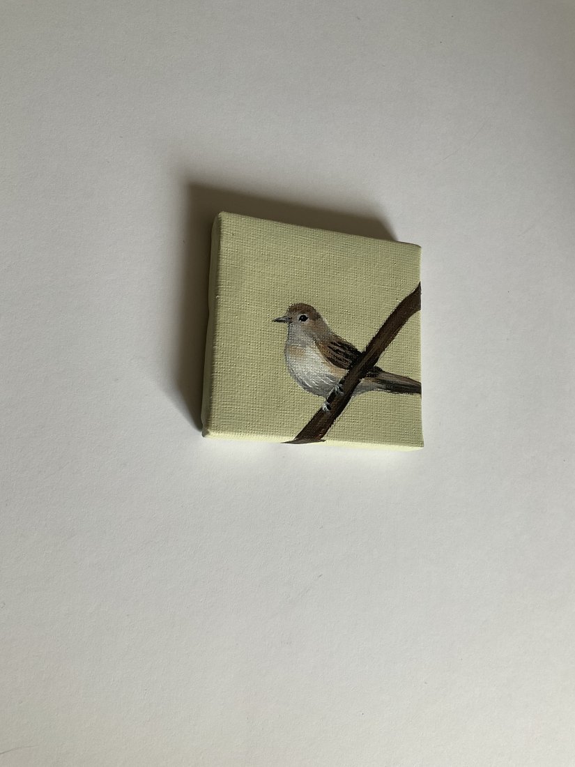 Obrazek z ptaszkiem, ręcznie malowany przeze mnie.