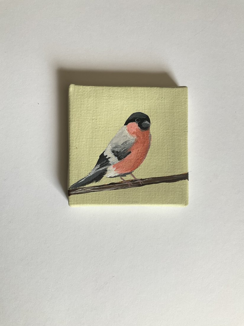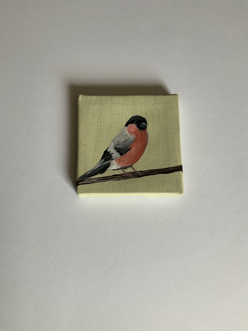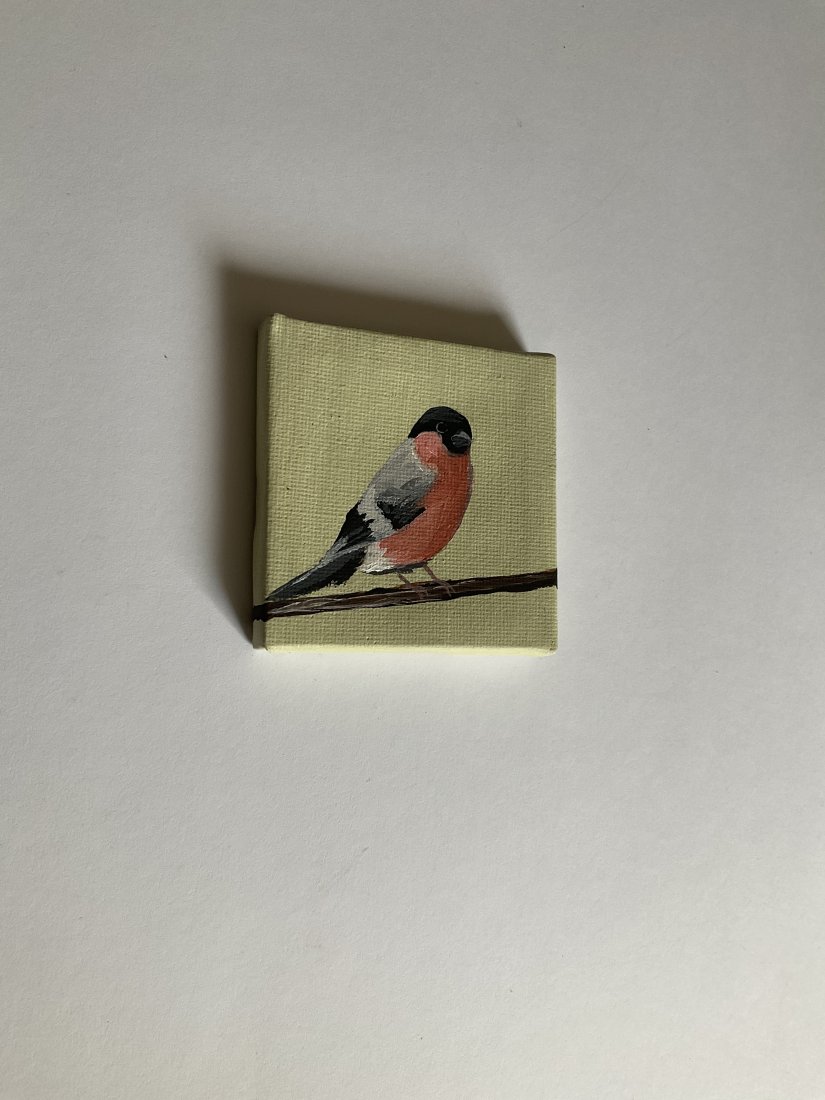 Obrazek z ptaszkiem, ręcznie malowany przeze mnie.