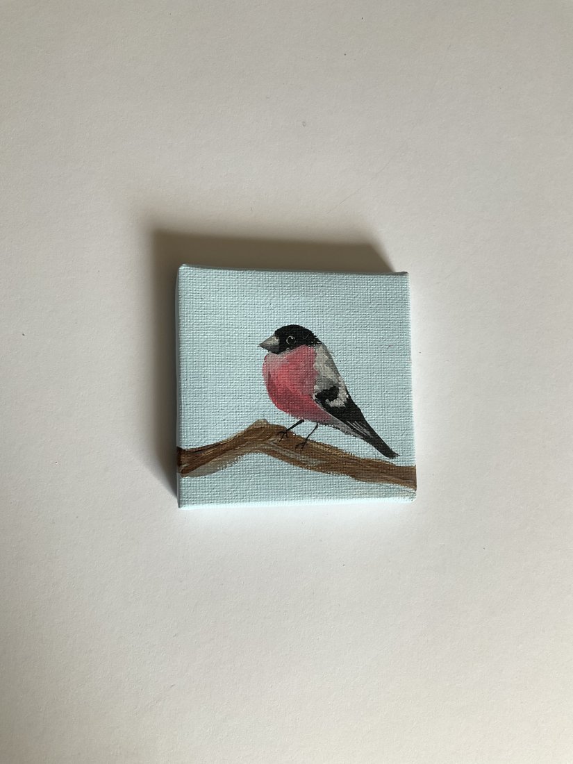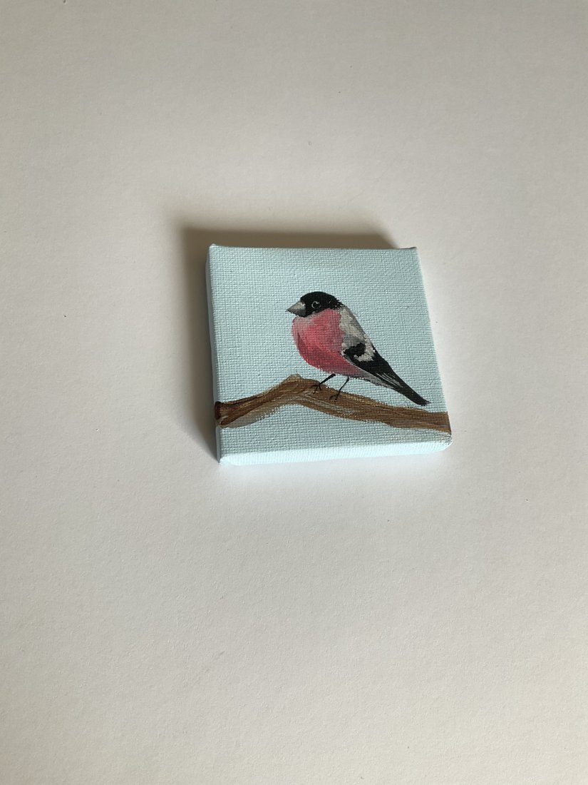 Obrazek z ptaszkiem, ręcznie malowany przeze mnie.