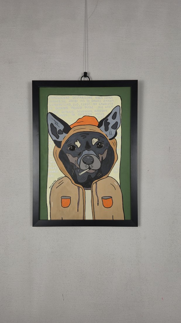Niech Cię nie zwiedzie jego rozmiar. Ten pinczer / ratlerek ma w sobie więcej "osiedlowej energii" niż niejeden duży pies. Oto "Arek Doręczyciel" – typ, który zawsze "coś ogarnia". Bluza z kapturem, pewny wzrok i lekki cwaniacki vibe. Trochę kibic, trochę uliczny chłopak, trochę… taki, co "wie gdzie zapukać" ????
