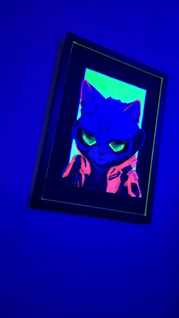 Niektóre elementy grafiki świecą pod wpływem niebieskiego światła.