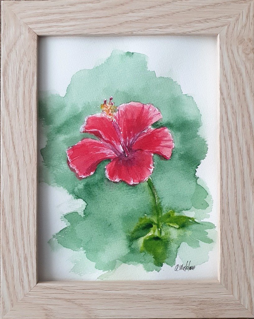 Obraz ręcznie malowany, wykonany w technice mieszanej; na białym, wysokogatunkowym papierze.