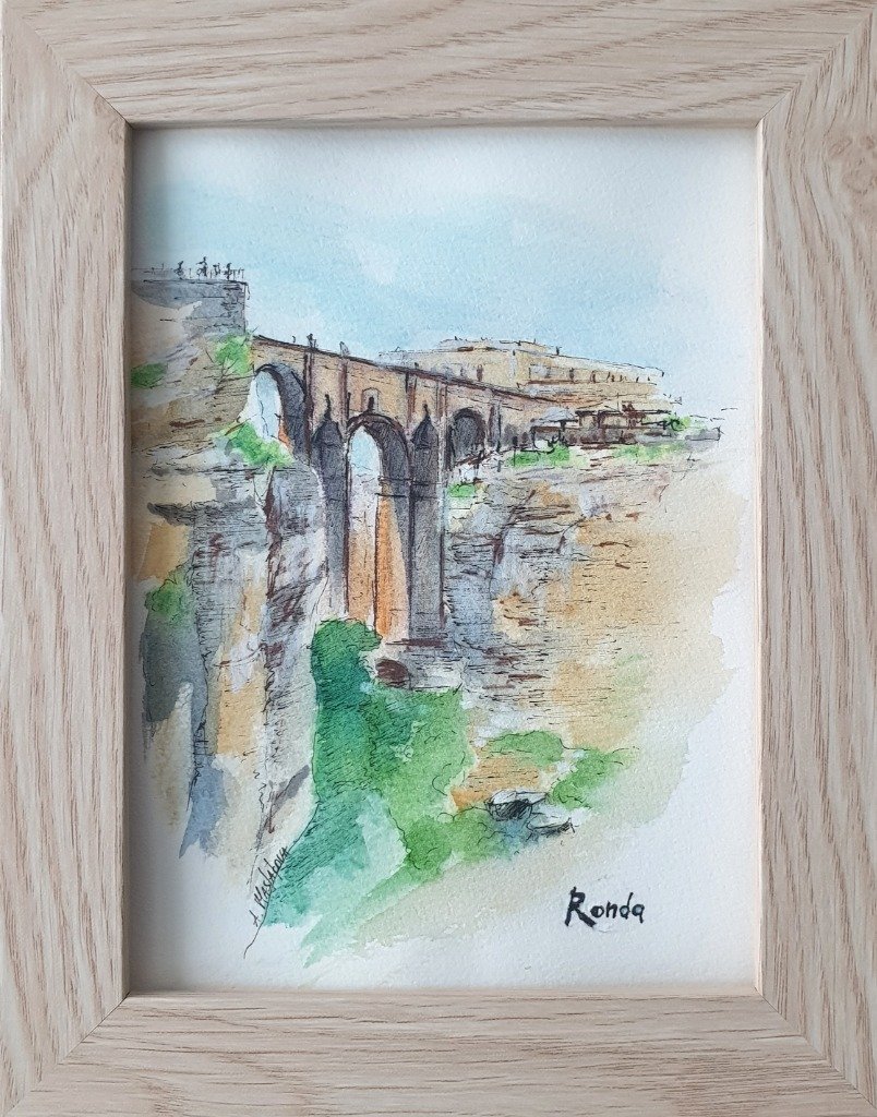 Obraz ręcznie malowany, wykonany w technice mieszanej; na białym, wysokogatunkowym papierze.