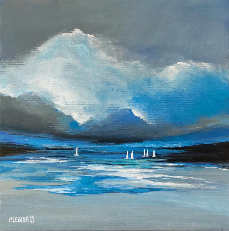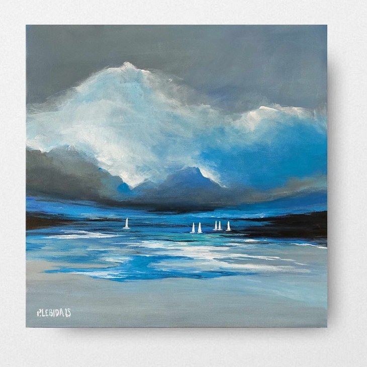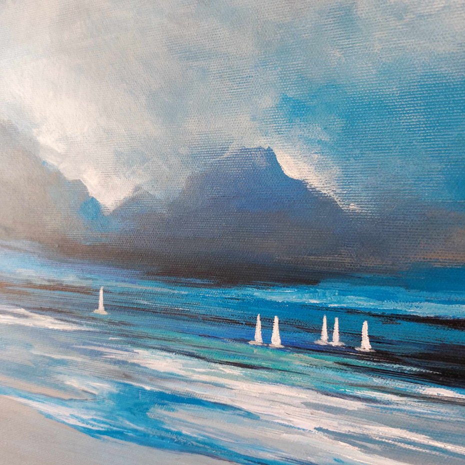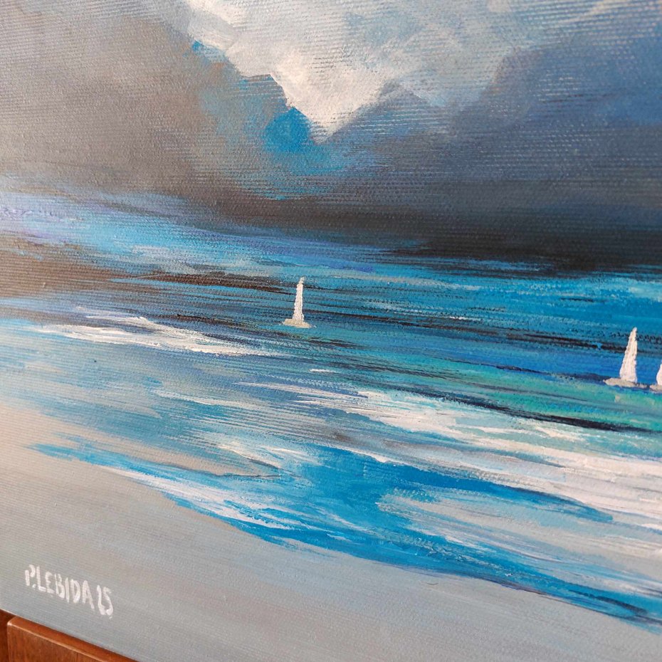 Obraz malowany w technice akrylowej na płótnie naciągniętym na ramę o grubości ok. 1,5 cm.