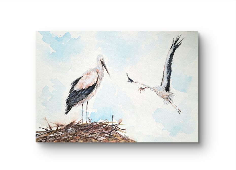 Obraz ręcznie malowany, wykonany farbami akwarelowymi; na białym, wysokogatunkowym papierze.
