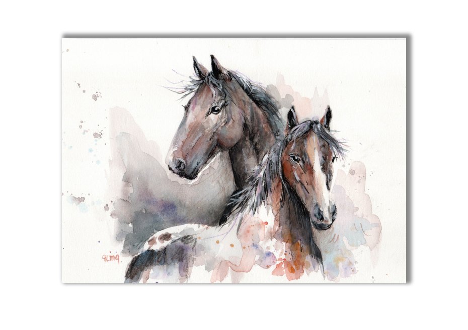 Obraz ręcznie malowany, wykonany w technice mieszanej; na białym, wysokogatunkowym papierze.