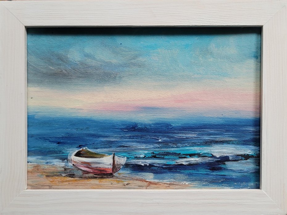 5.  > Obraz ręcznie malowany "Morze" łódka+ rama (nr 7079672)