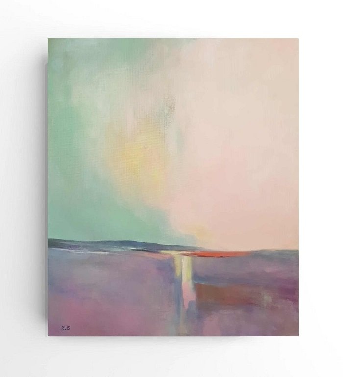 Obraz malowany w technice akrylowej na płótnie naciągniętym na ramę o grubości ok. 1,5 cm.