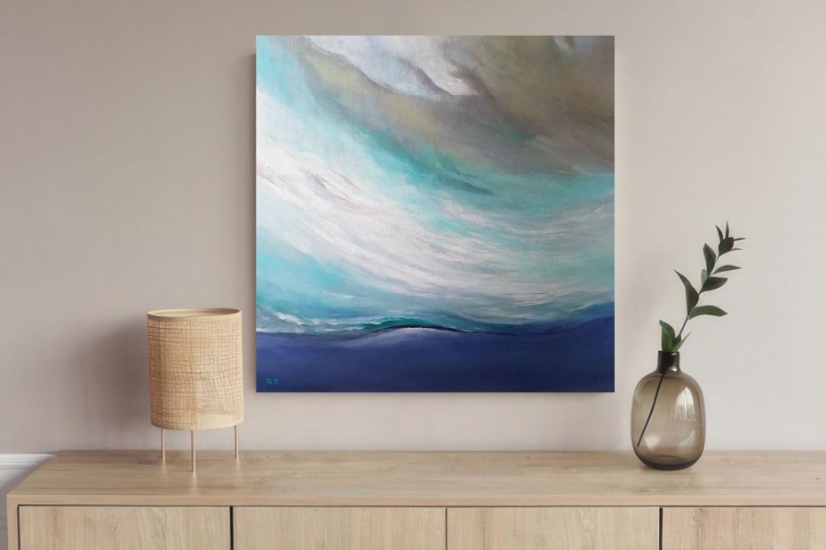 Obraz malowany w technice akrylowej na płótnie naciągniętym na ramę o grubości ok. 1,5 cm.