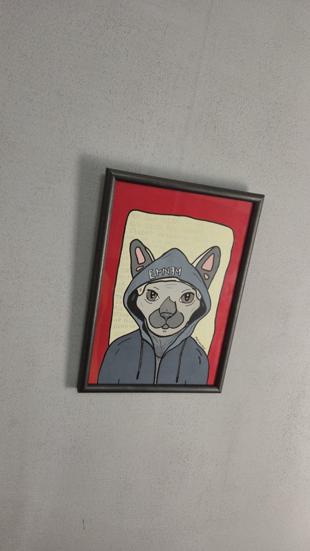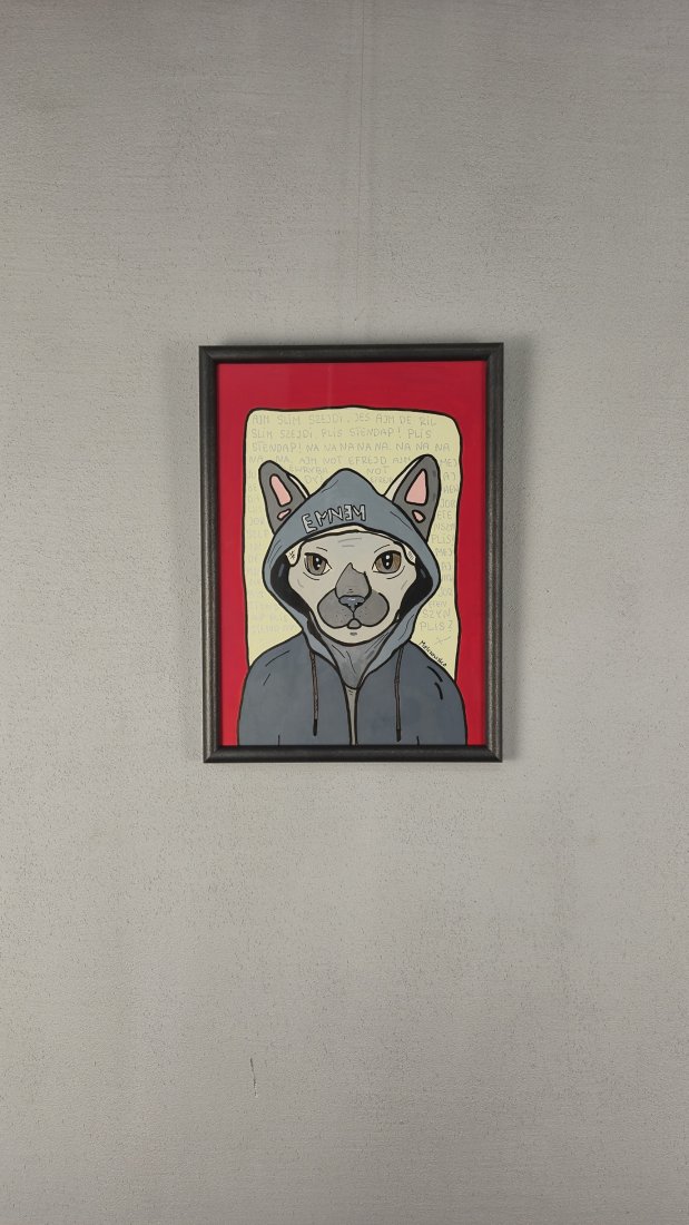 Nasza grafika w plakatowym stylu, świetnie sprawdzi się jako prezent dla wyluzowanego kociarza/kociary lub jako ozdoba Twojego domu.