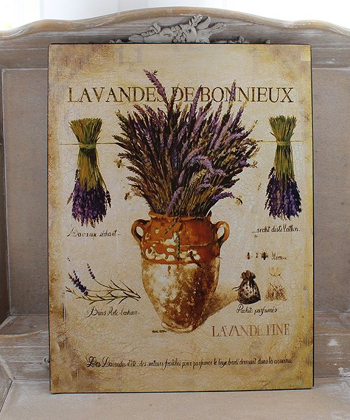 Piękny nowy obrazek metalowy z lawendą. Uroczy obrazek w sielskim klimacie.
