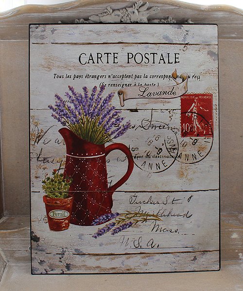 Piękny nowy obrazek metalowy z lawendą. Uroczy obrazek w sielskim klimacie.