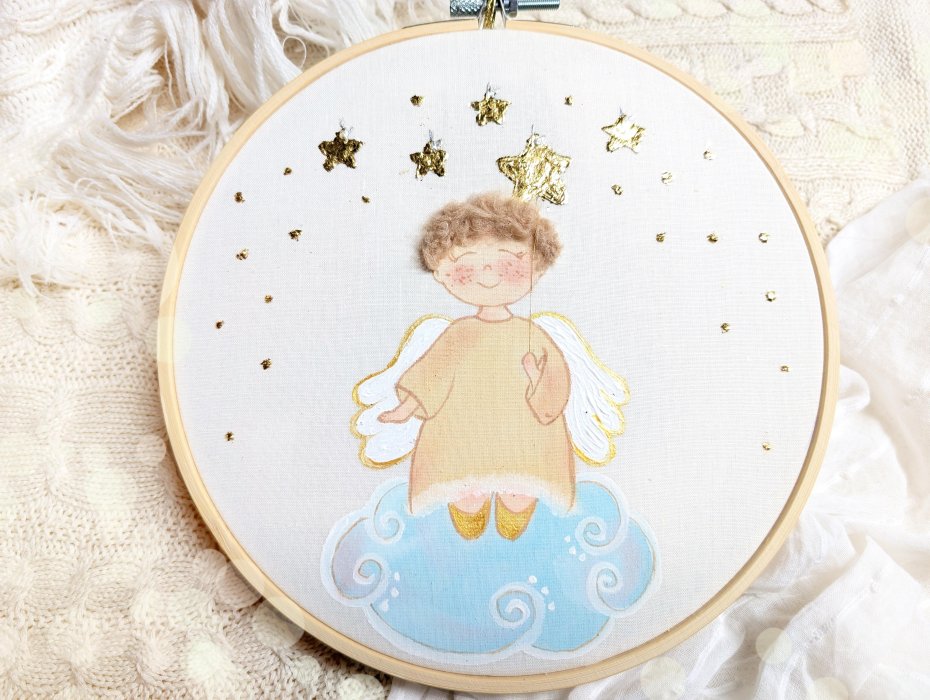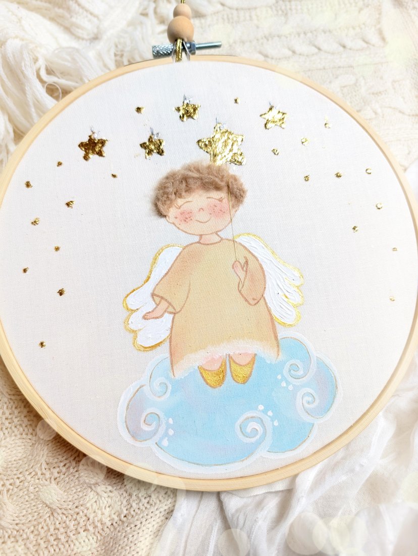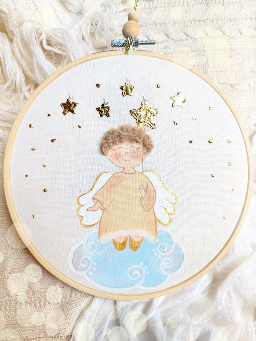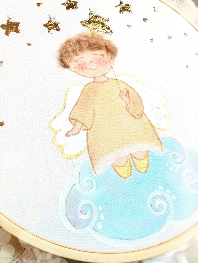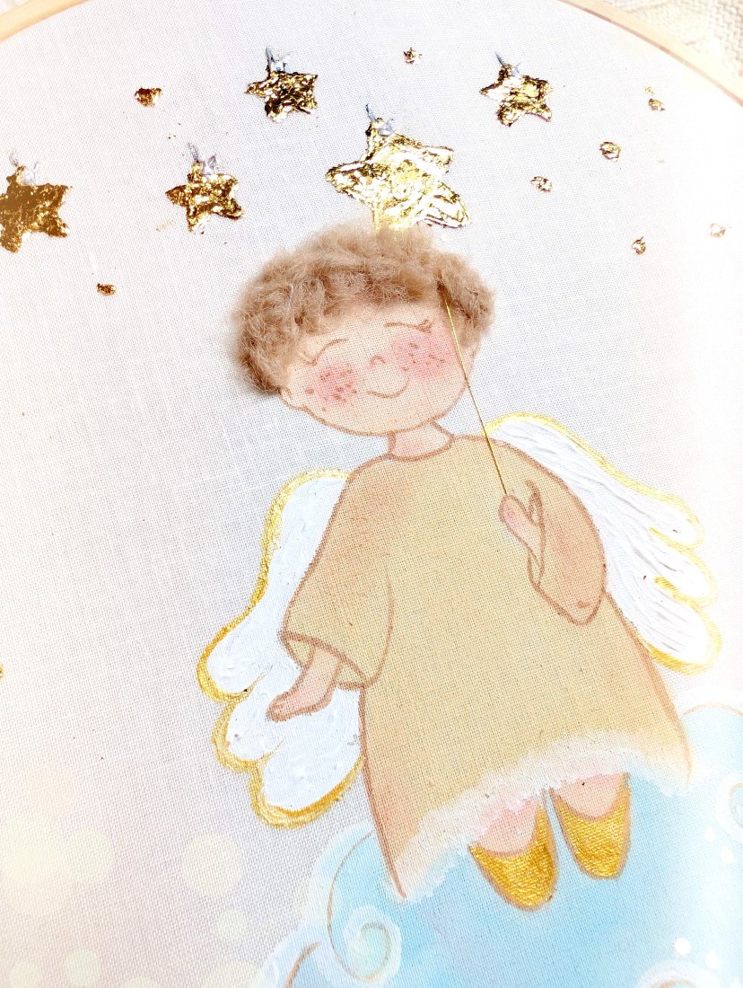 Efekt 3D tworzą włoski aniołka oraz gwiazdki.