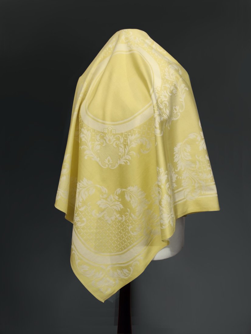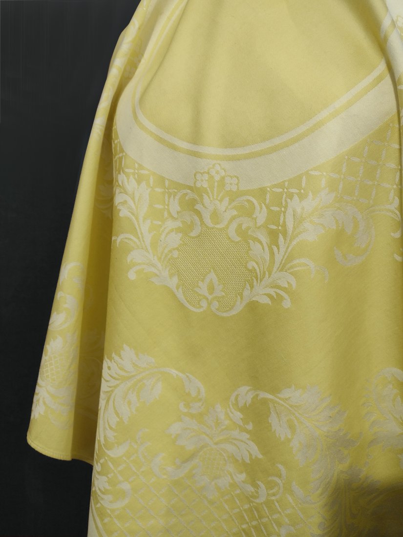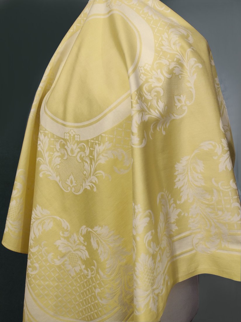 Żakardowy bawełniany obrus o wymiarach 93/96 cm, kolor pastelowy - bananowo żółty.
