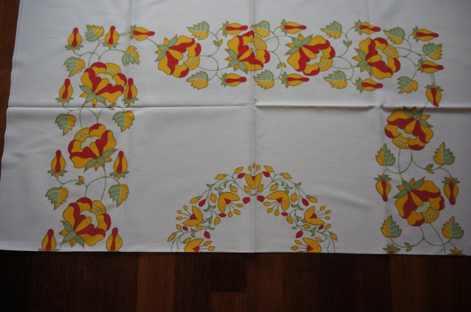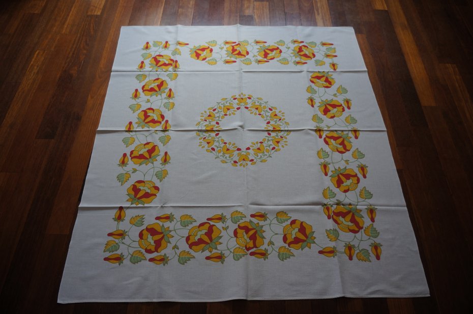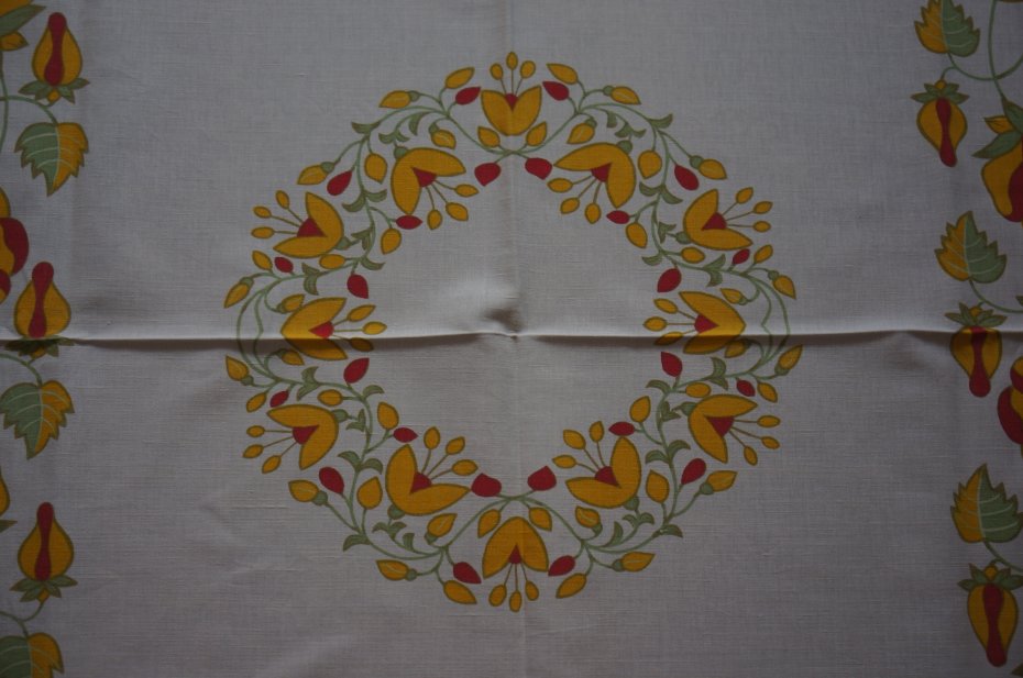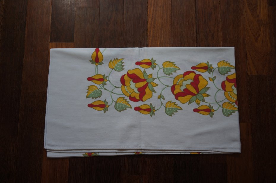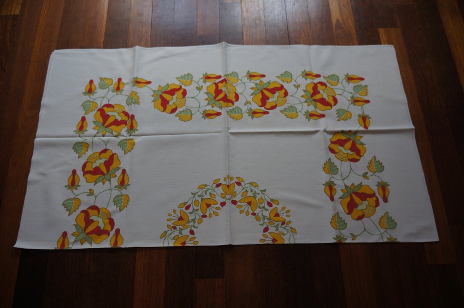 Obrus w malowane kwiaty. Ładna, żywa kolorystyka. Len. Vintage. Stan bardzo dobry.