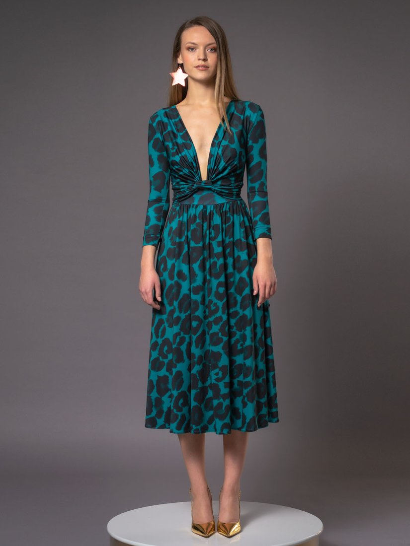 Print to nasza autorska panterka "Deep Tropic" - głęboka, turkusowo-czarna, przyciągająca wzrok. Idealna na każdą porę roku, idealna na wieczór