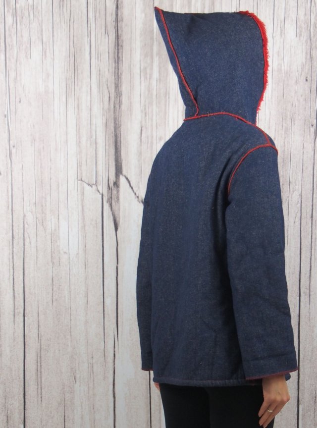 świetna kurteczka vintage, z elfickim kapturkiem. Ocieplona sztucznym czerwonym futerkiem. Marka: palla.