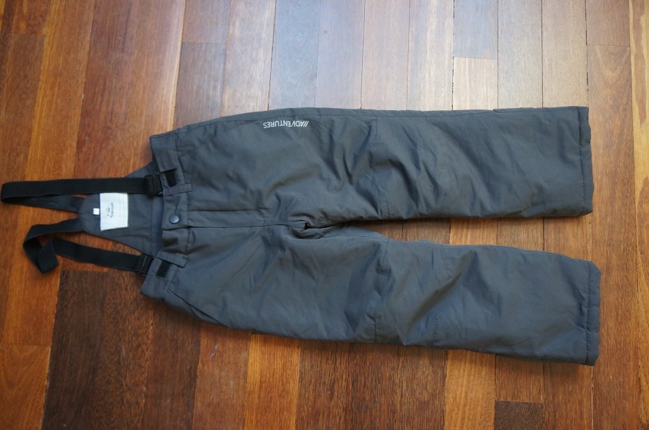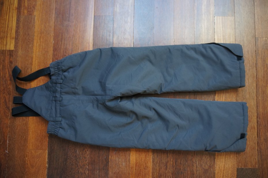 Dziecięce spodnie ocieplane Topolino. Nieprzemakalne, wiatroszczelne, ocieplane, regulowane szelki, kołnierz przeciwśnieżny. Jedyną wadą jest wysunięcie się materiału w kroku. Naprawiłam to - ostatnie zdjęcie.