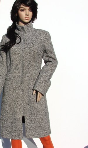praktyczny, uniwersalny, ciepły płaszczyk wełniany w kolorze pieprz z solą,