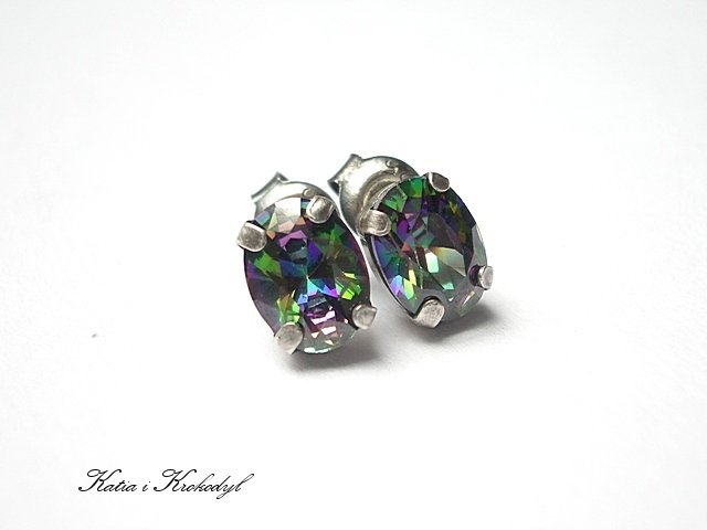 Kolczyki wykonane ręcznie ze srebra [pr. 925] w połączeniu z cyrkoniami mystic [8mmx6mm] oprawione w kasetki .Srebro oksydowane i przetarte .Biżuteria ozdobnie zapakowana