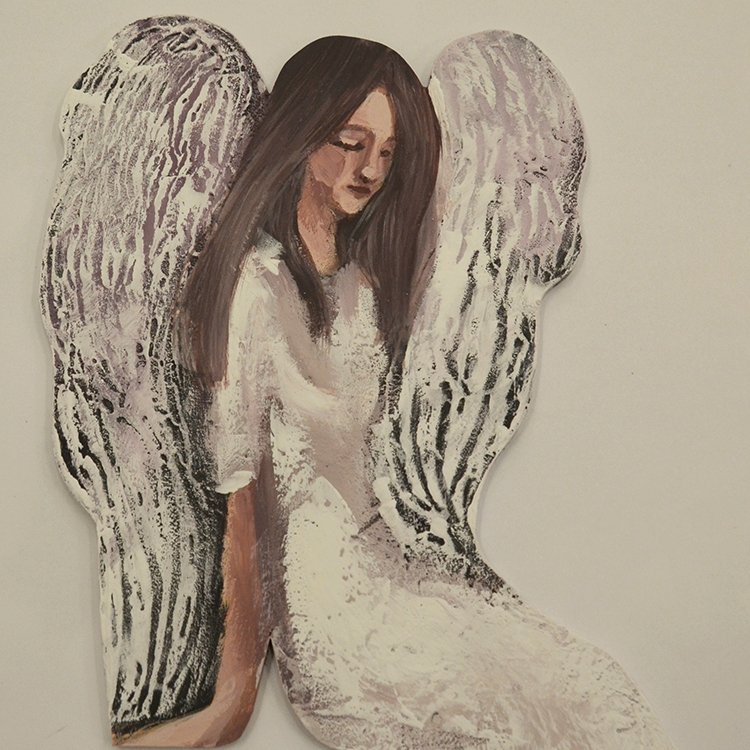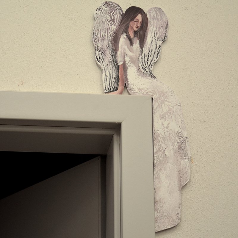 Anioł ręcznie malowany na drewnianej, dociętej do kształtu płycie. Wymiar ok. 50 cm x 19 cm x 5 mm. Można go umieścić na futrynie bądź ramie lustra czy półce z kantem. Widoczna faktura na skrzydłach i szacie. Każdy z moich Aniołów jest oryginalny, niepowtarzalny, ma swój własny urok, charakter i osobowość. Doskonały prezent na dla bliskiej osoby.