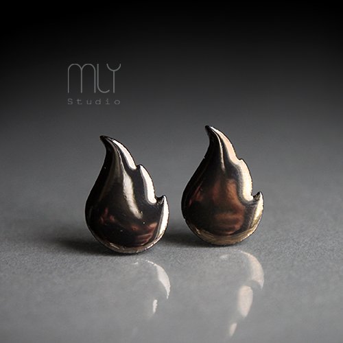 Oryginalne ceramiczne kolczyki w formie sztyftów, ręcznie wykonane z delikatnej kamionki, jednostronnie szkliwione stalowo srebrzystym szkliwem o pięknym metalicznym połysku, na antyalergicznych sztyftach w kolorze srebrnym. Długość ok 17mm. Polecam