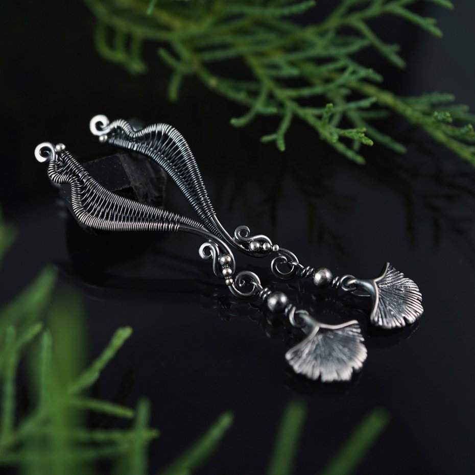 #kolczyki z listkami miłorzębu,