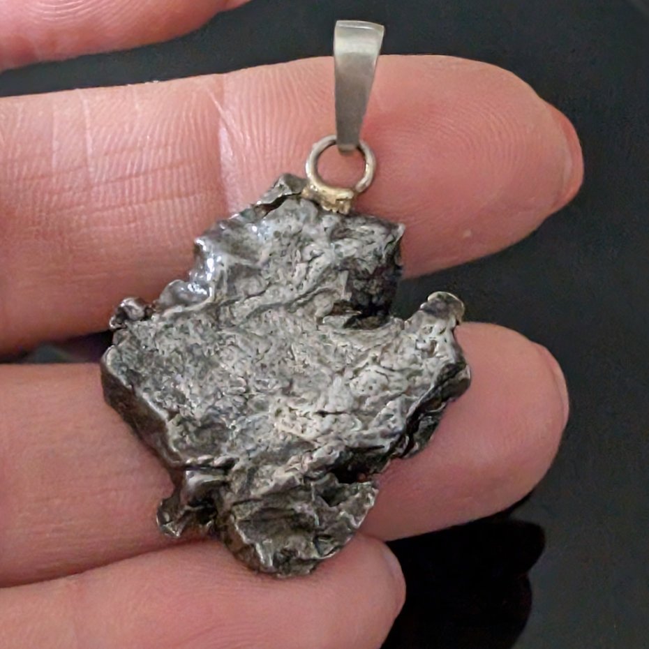 Wisior z meteorytem żelaznym Campo del Cielo, który znaleziono w 1576 roku w Argentynie. Krawatka srebro 925 Uniwersalny, dla niego lub dla niej. Wymiary 27 x 25mm. Długość max 42 mm. Waga wisiora 11,8 g. Do meteorytu dołączona zostanie metryka z datą, miejscem spadku i wagą. Wisiorek zostanie zapakowany w ozdobne pudełeczko.