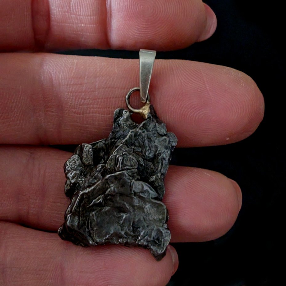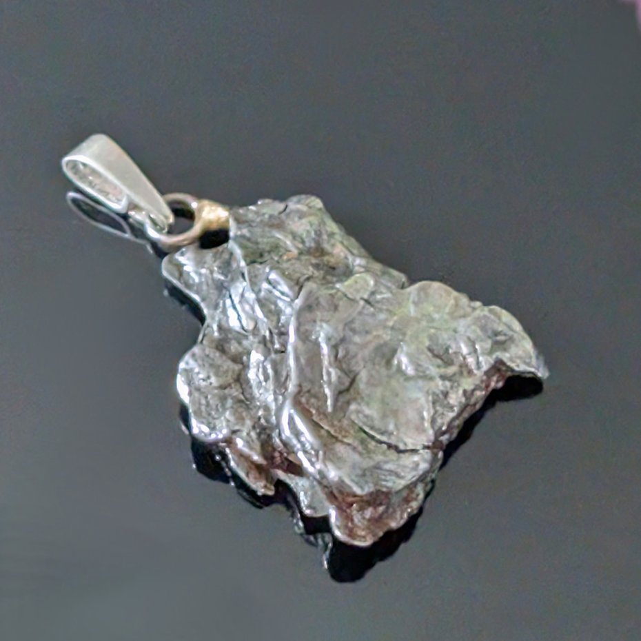 Wisior z okazałym meteorytem żelaznym Campo del Cielo, który znaleziono w 1576 roku w Argentynie. Krawatka srebro 925 Uniwersalny, dla niego lub dla niej. Wymiary 29 x 23 mm. Długość max 37 mm. Waga wisiora 11,5 g. Do meteorytu dołączona zostanie metryka z datą, miejscem spadku i wagą. Wisiorek zostanie zapakowany w ozdobne pudełeczko