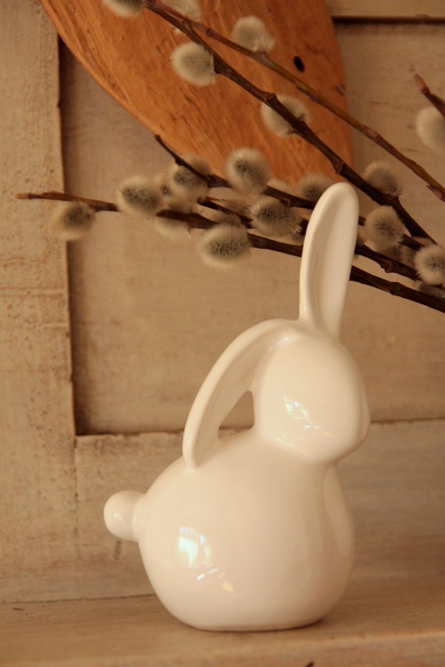 Uroczy, biały ceramiczny zajączek z oklapniętym uszkiem:) Idealny na Wielkanoc, może być niezobowiązującym upominkiem!
