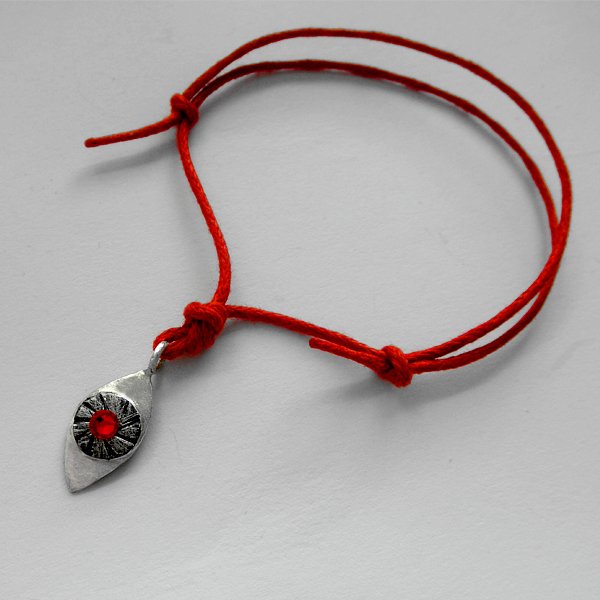OKO - zabawny dodatek. Ciekawy dodatek przykuwają uwagę i zaskakuje wzornictwem. Taka bransoletka sprawi, że każda stylizacja nabierze niepowtarzalnego, fantazyjnego charakteru. Bransoletka wykonana jest z: srebro, ozdobny sznurek kryształ SWAROVSKI ELEMENTS (Wymiary: 3x3.2mm).Srebro - zmatowione, oksydowane. Długość zawieszki - ok. 1,5 cm. Szerokość - 1 cm.
