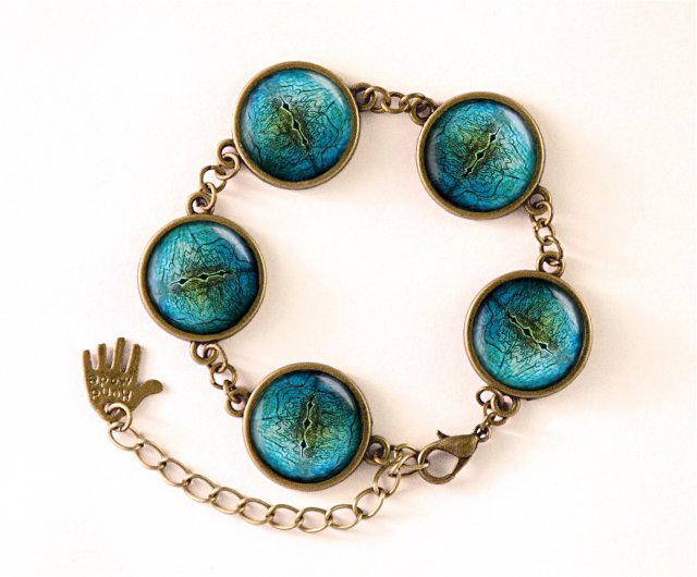Ręcznie robiona bransoletka z wysokiej jakości grafiką pokrytą wypukłym, powiększającym szkiełkiem.