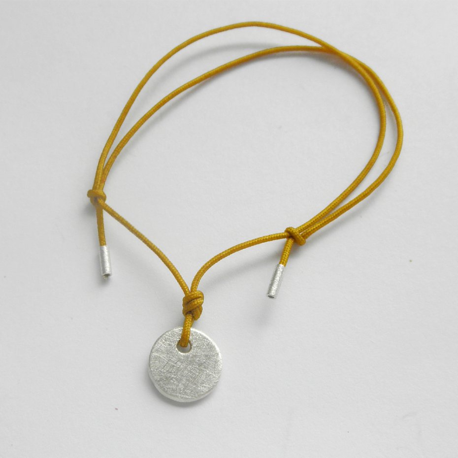 OKRAG bransoletka - uroczy dodatek . Idealna dla kobiet ceniące ładną oraz oryginalna biżuterii. Bransoletka wykonana jest z: srebro, ozdobny sznurek. Srebro zmatowione. Długość zawieszki - ok. 1 cm. Szerokość zawieszki - ok. 0.6 cm.
