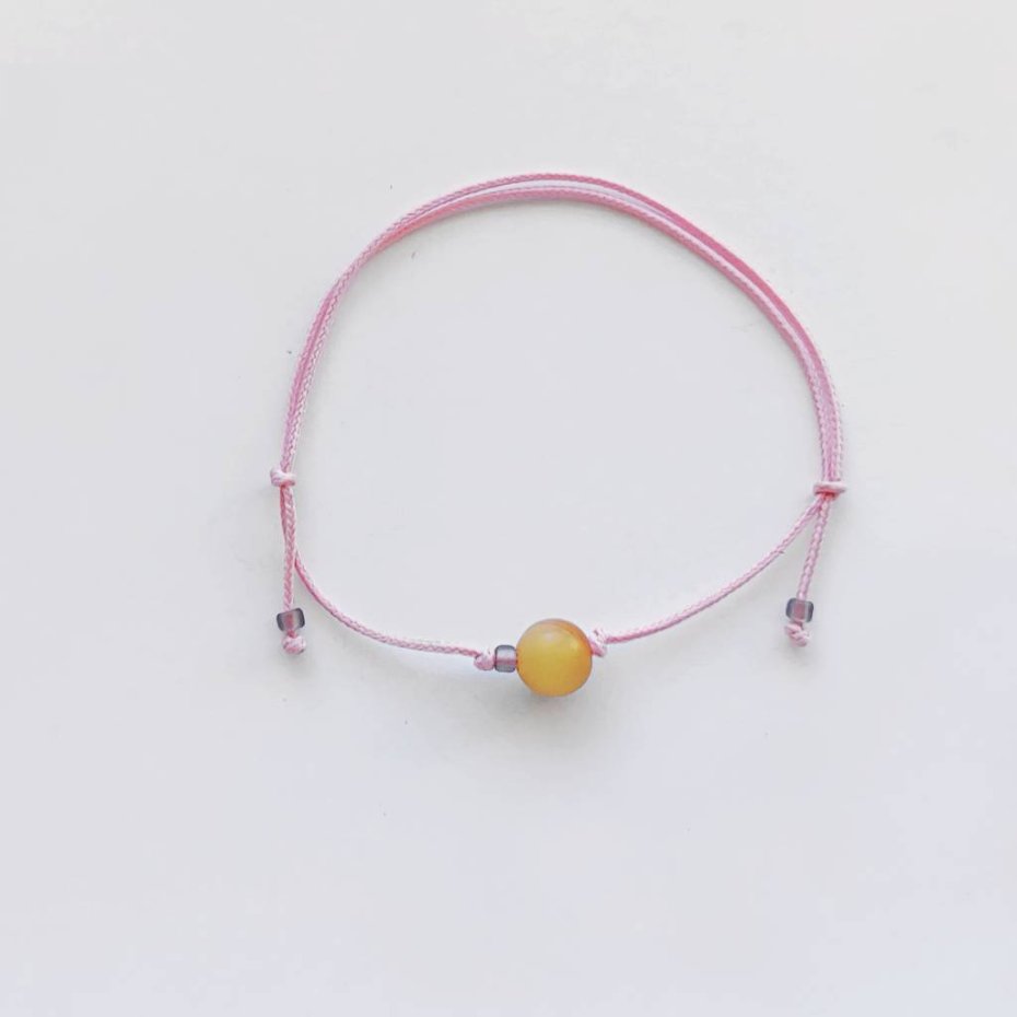 OKRĄG bransoletka – uroczy dodatek . Idealna dla kobiet ceniące ładną oraz oryginalna biżuterii. Bransoletka wykonana jest z :Bursztyn 1 cm, szklane koraliki, ozdobny sznurek. Istnieje możliwość wykonania bransoletki w innych kolorach sznurka.