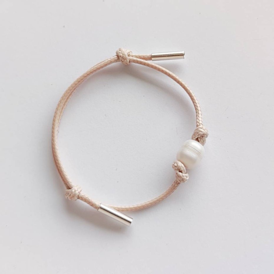 OKRĄG bransoletka – uroczy dodatek . Idealna dla kobiet ceniące ładną oraz oryginalna biżuterii. Bransoletka wykonana jest z, Perła słodkowodna (0k. 1 cm), srebro pr. 925, ozdobny sznurek. Istnieje możliwość wykonania bransoletki w innych kolorach .