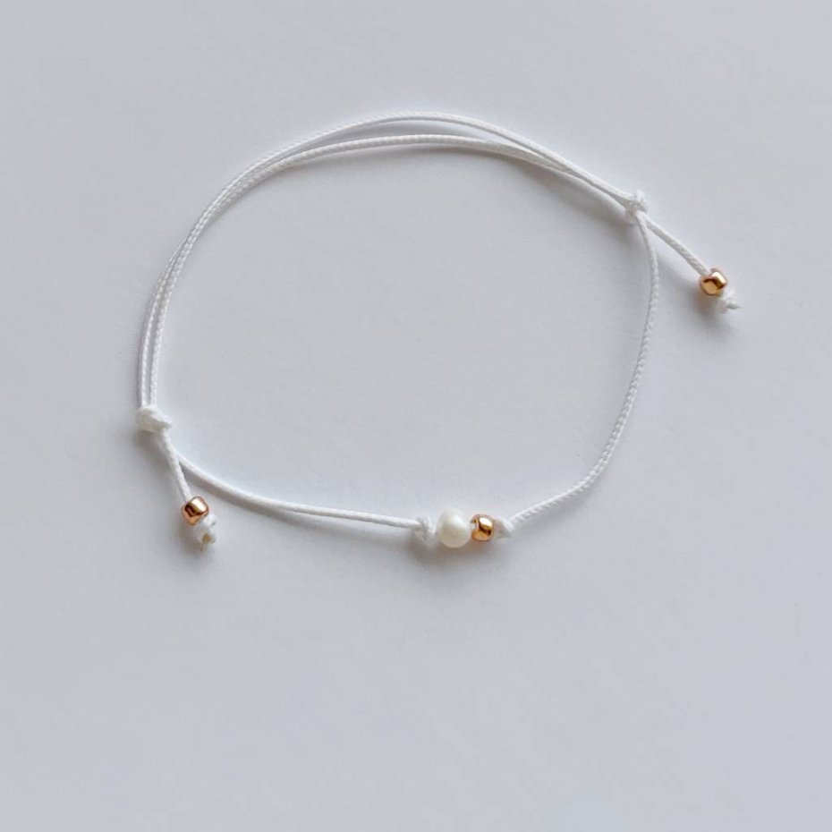 OKRĄG bransoletka – uroczy dodatek . Idealna dla kobiet ceniące ładną oraz oryginalna biżuterii. Bransoletka wykonana jest z, Perła słodkowodna (0k. 0,4 cm), koraliki szklane, ozdobny sznurek. Istnieje możliwość wykonania bransoletki w innych kolorach