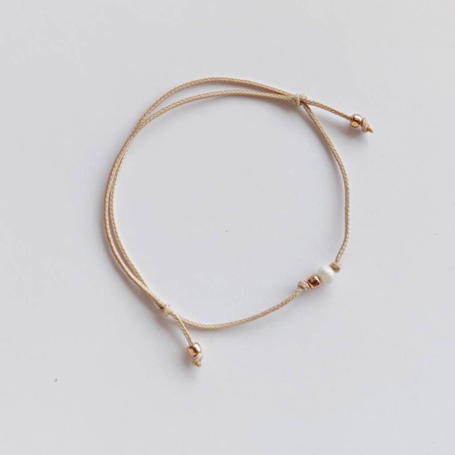 OKRĄG bransoletka – uroczy dodatek . Idealna dla kobiet ceniące ładną oraz oryginalna biżuterii. Bransoletka wykonana jest z, Perła słodkowodna (0k. 0,4 cm), koraliki szklane, ozdobny sznurek. Istnieje możliwość wykonania bransoletki w innych kolorach