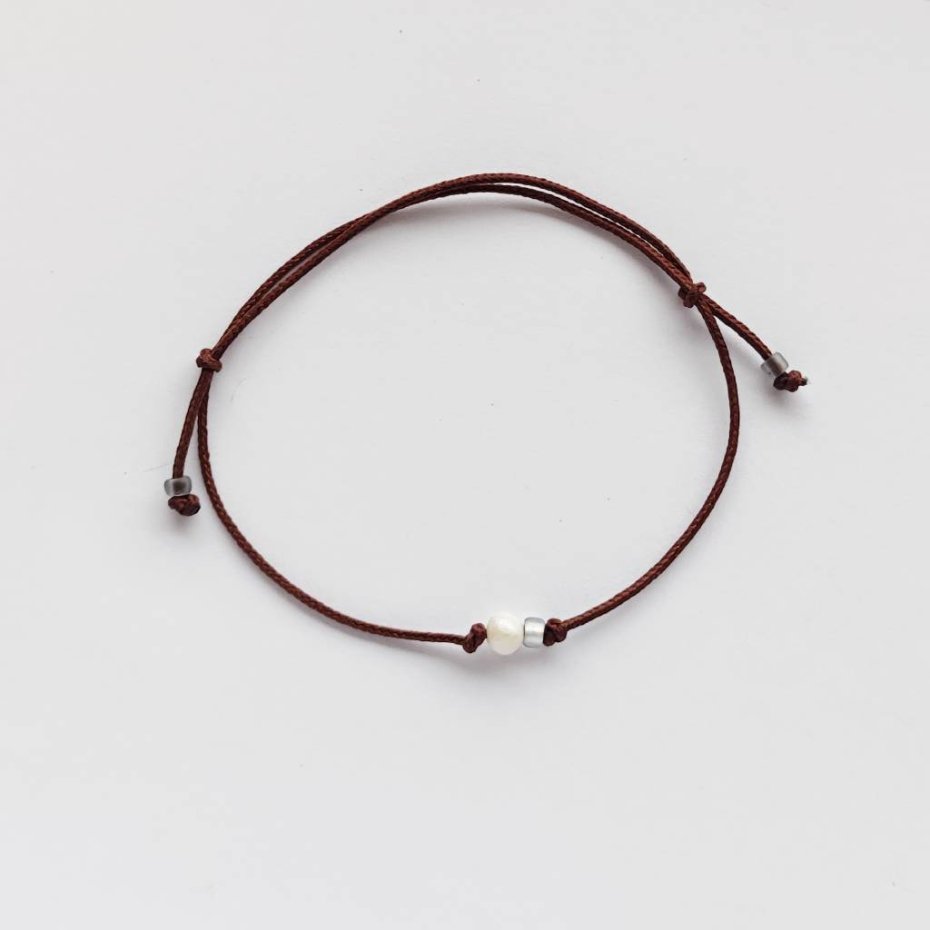 OKRĄG bransoletka – uroczy dodatek . Idealna dla kobiet ceniące ładną oraz oryginalna biżuterii. Bransoletka wykonana jest z, Perła słodkowodna (0k. 0,4 cm), koraliki szklane, ozdobny sznurek. Istnieje możliwość wykonania bransoletki w innych kolorach
