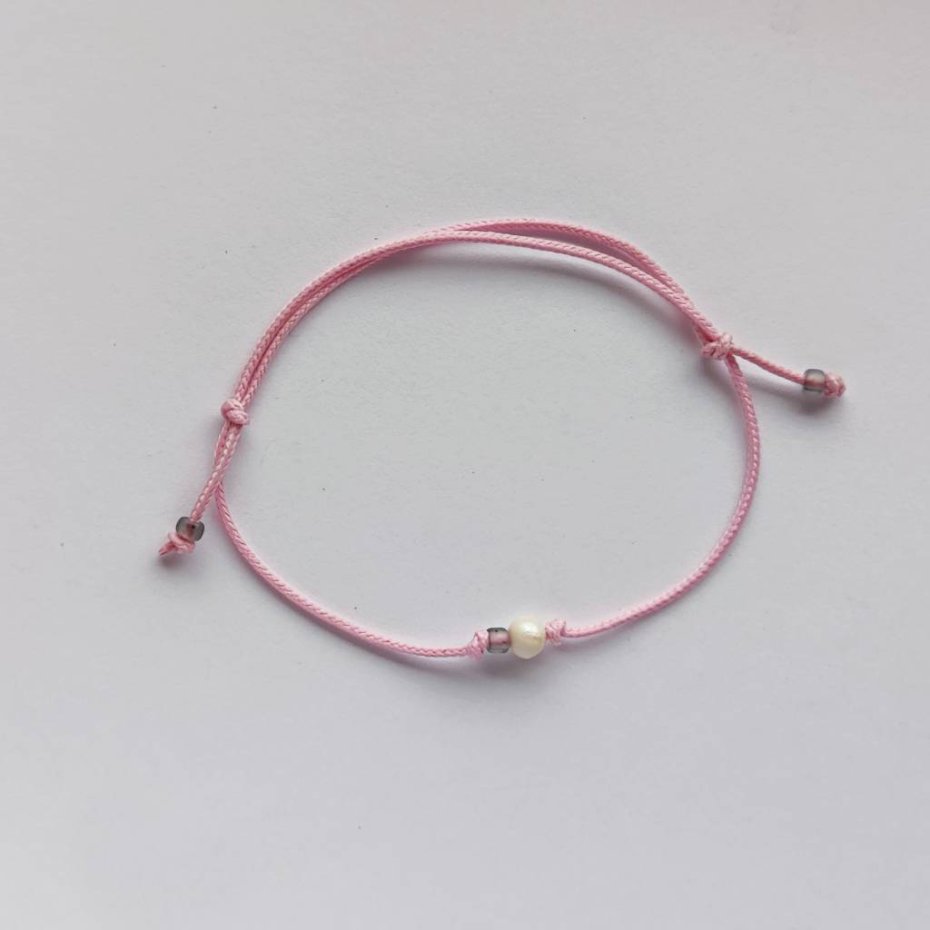 OKRĄG bransoletka – uroczy dodatek . Idealna dla kobiet ceniące ładną oraz oryginalna biżuterii. Bransoletka wykonana jest z, Perła słodkowodna (0k. 0,4 cm), koraliki szklane, ozdobny sznurek. Istnieje możliwość wykonania bransoletki w innych kolorach
