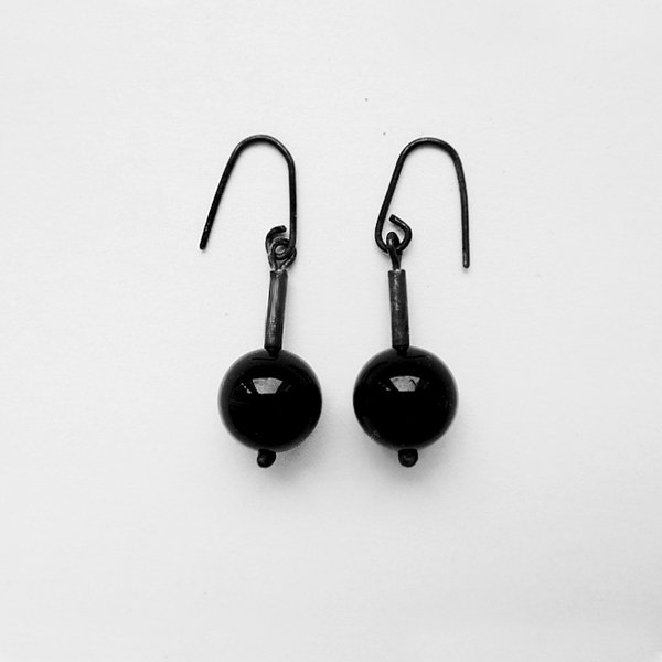 Oryginalność i prostota. OKRĄG - kształt doskonały. Kolekcję cechuje elegancja i prostota jak również ekstrawagancja i indywidualizm. Kolczyki wykonane są z - srebro, onyks 12 mm .Srebro - oksydowane.Bigle otwarte- srebro pr. 925, oksydowane . Długość z biglami 4 cm.