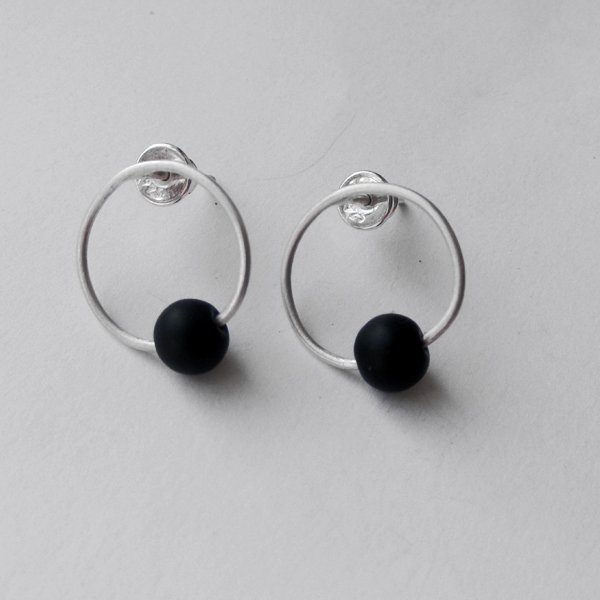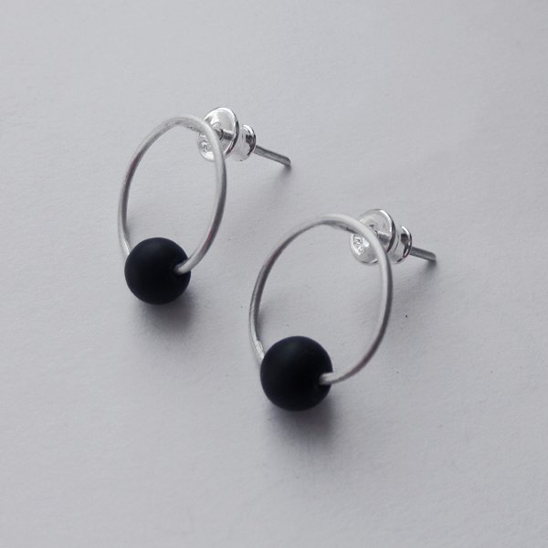 Oryginalność i prostota. OKRĄG - kształt doskonały. Kolekcję cechuje elegancja i prostota jak również ekstrawagancja i indywidualizm. Kolczyki na sztyftach wykonane są z - srebro, Black stone czarny matowy 6 mm.Srebro - zmatowione. Szerokość ok. 1,5 cm.Termin realizacji zamówienia to 1-2 dni