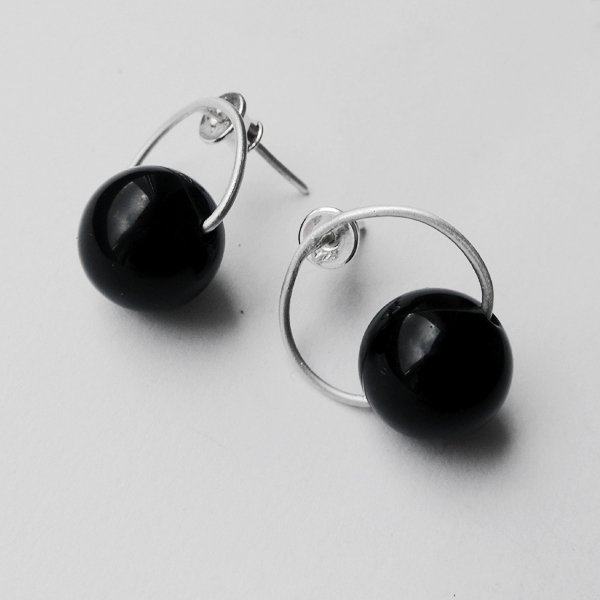 Oryginalność i prostota. OKRĄG - kształt doskonały. Kolekcję cechuje elegancja i prostota jak również ekstrawagancja i indywidualizm. Kolczyki na sztyftach wykonane są z - srebro, onyks 12mm.Srebro - zmatowione. Szerokość ok. 1,5 cm.Termin realizacji zamówienia to 1-2 dni