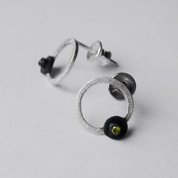 Oryginalność i prostota. OKRĄG - kształt doskonały. Kolekcję cechuje elegancja i prostota jak również ekstrawagancja i indywidualizm. Kolczyki na sztyftach wykonane są ze srebra, cyrkonia. Srebro - próby 0,925, zmatowione, oksydowane . Średnica kolczyka - 1,2 cm. Termin realizacji zamówienia to 1-2 dni
