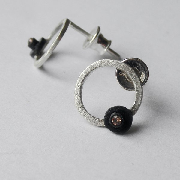 Oryginalność i prostota. OKRĄG - kształt doskonały. Kolekcję cechuje elegancja i prostota jak również ekstrawagancja i indywidualizm. Kolczyki na sztyftach wykonane są ze srebra, cyrkonia. Srebro - próby 0,925, zmatowione, oksydowane . Średnica kolczyka - 1,2 cm. Termin realizacji zamówienia to 1-2 dni